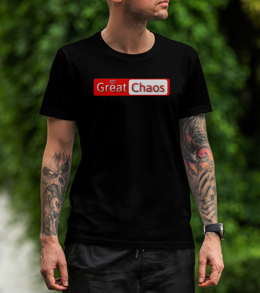 Great Chaos Red And White Text With Signal Waves T-Shirt