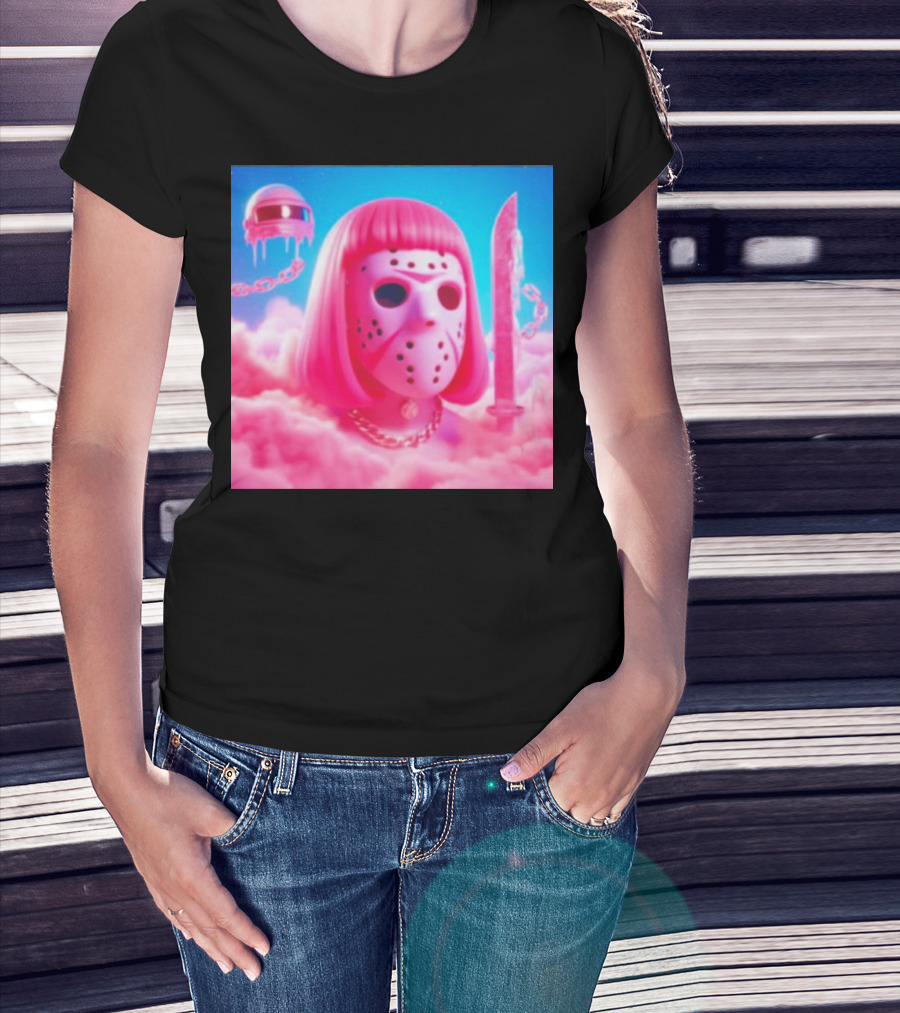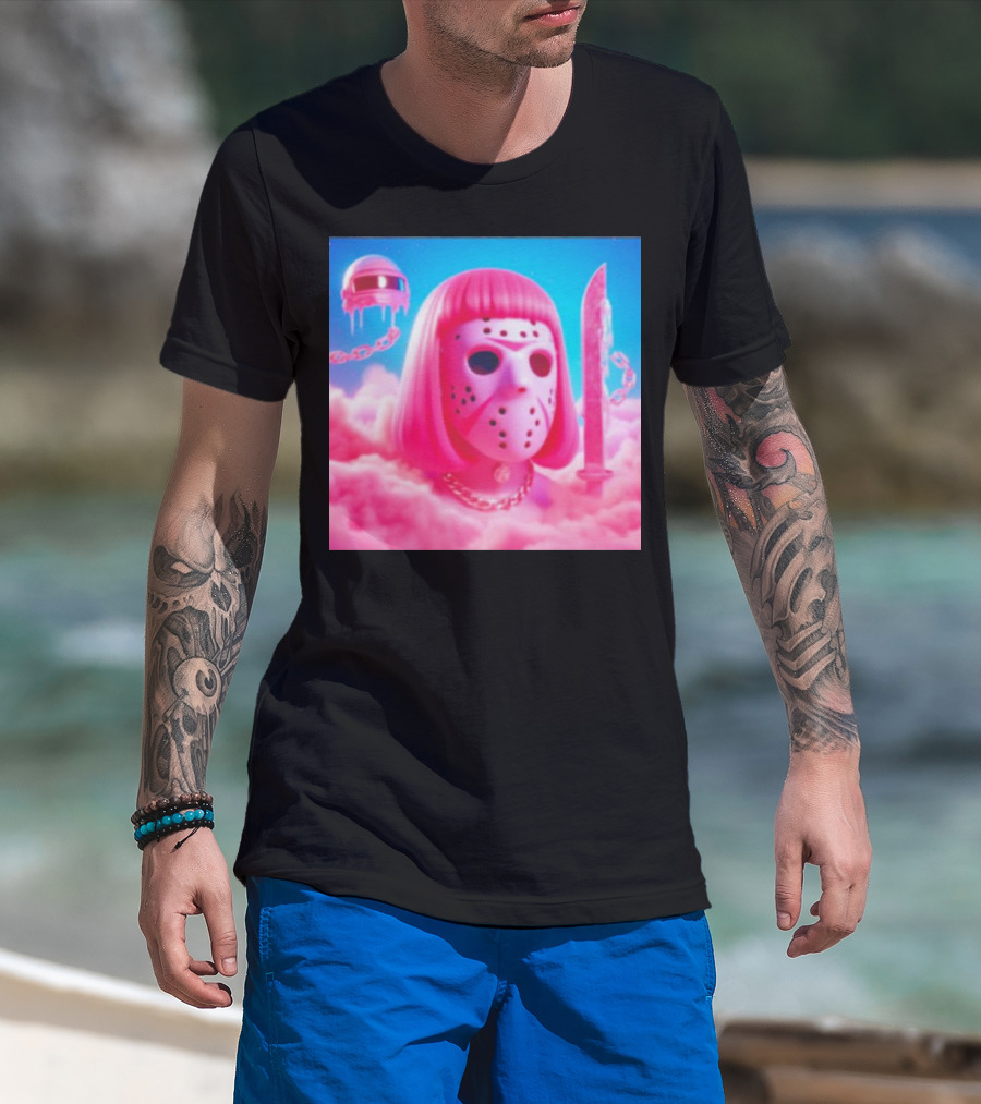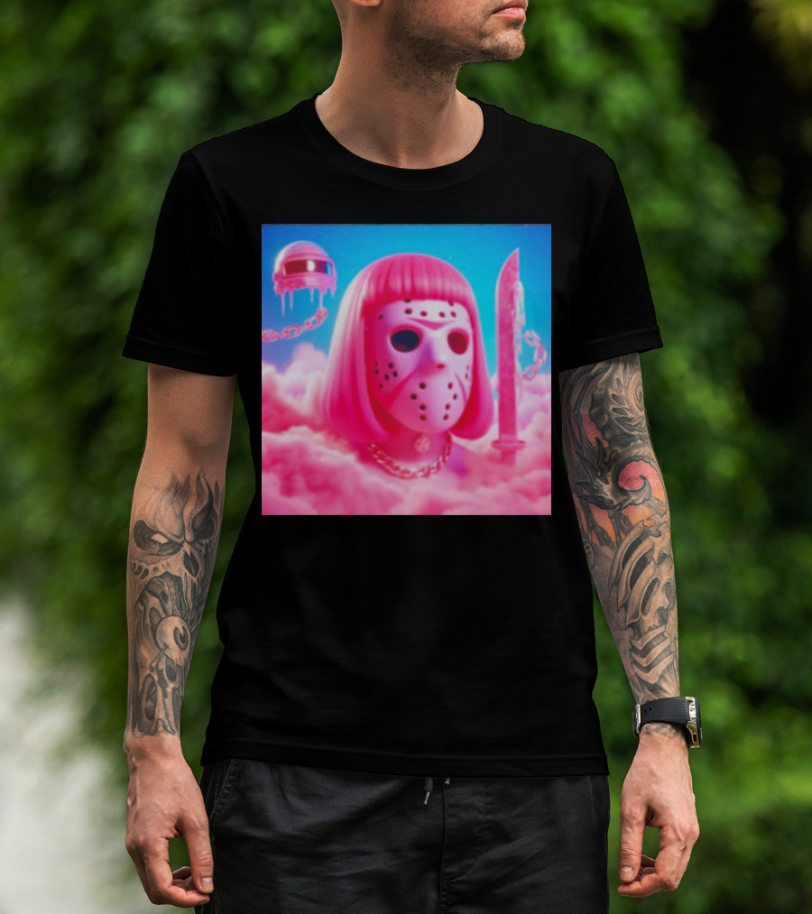 Pink Friday The 13th Jason Hockey Mask And Knife In Pink Clouds T-Shirt