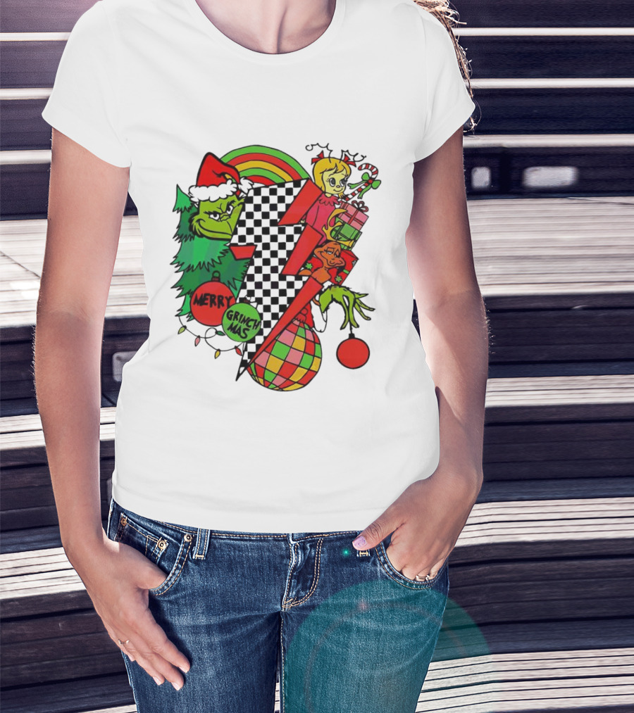 Merry Grinchmas Lightning Bolt Christmas Retro Dr. Seuss T-Shirt
