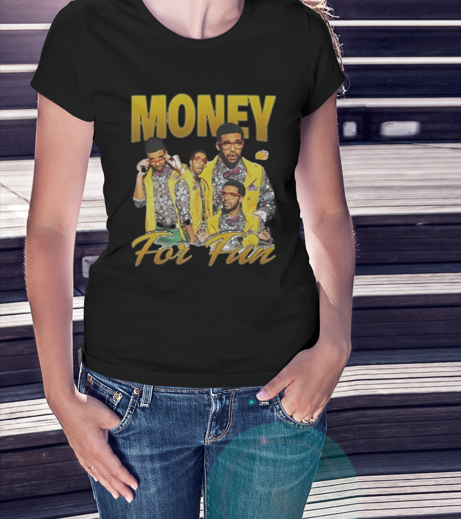 The Money For Fun Drake Collage T-shirt is designed for everyday wear and a consistent fit. Fabric is pre-shrunk ring-spun cotton with durable stitching. See the size chart below for exact measurements.
