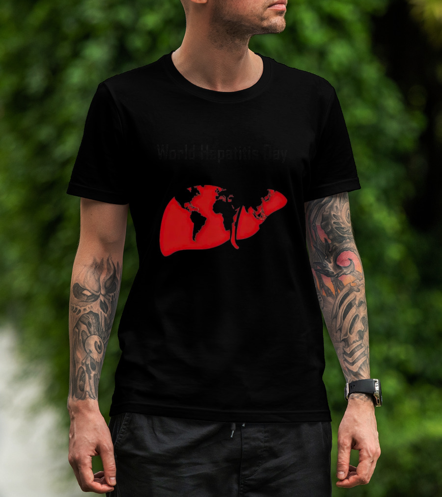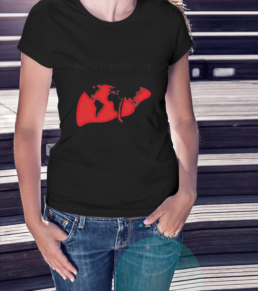 World Hepatitis Day 28th July Red Liver With World Map T-Shirt