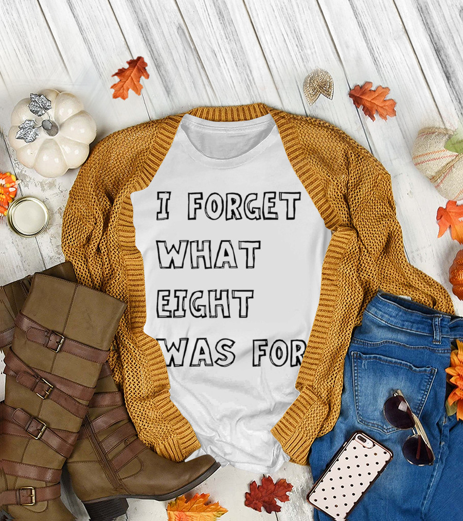 The I Forget What Eight Was For T-shirt is designed for everyday wear and a consistent fit. Fabric is pre-shrunk ring-spun cotton with durable stitching. See the size chart below for exact measurements.
