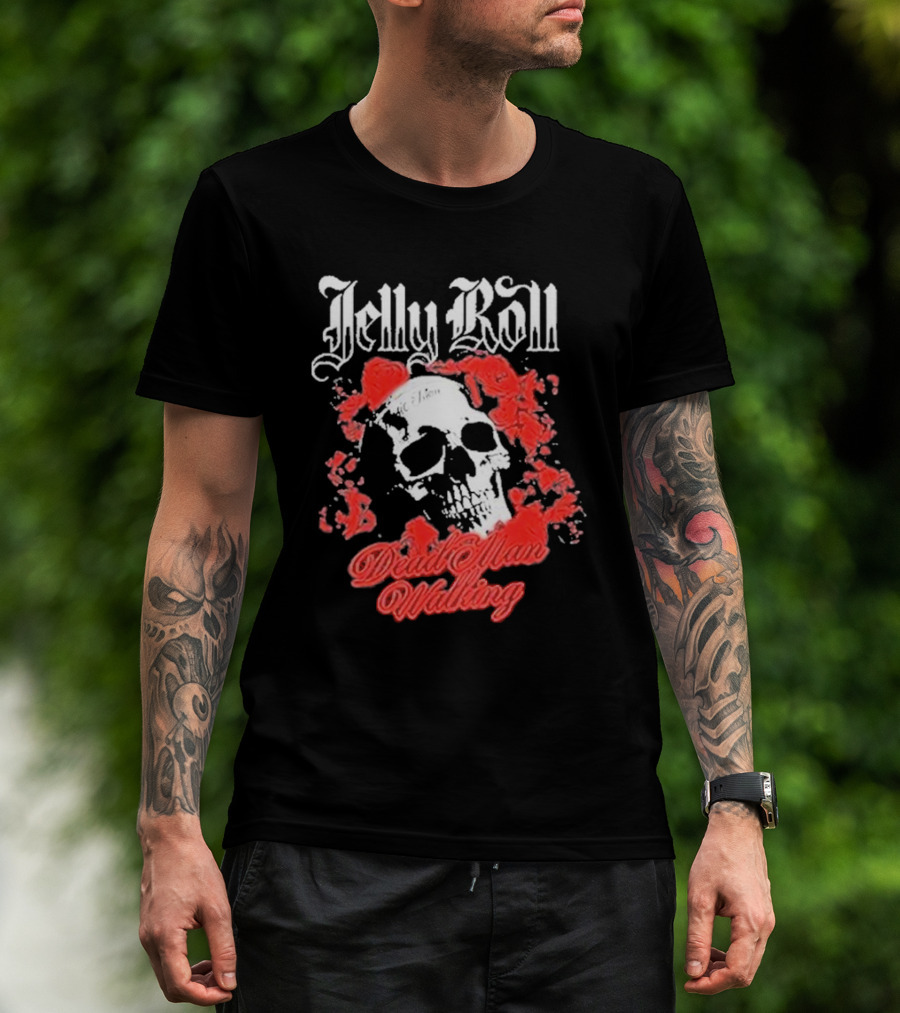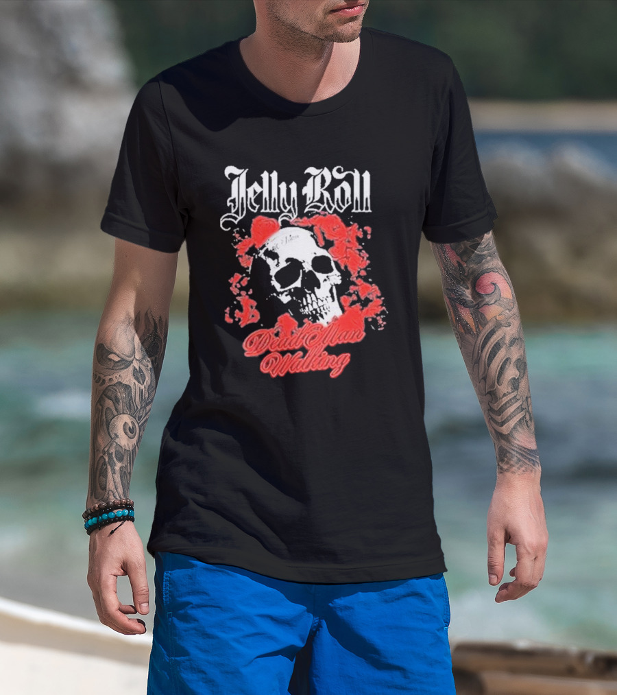 Jelly Roll Dead Man Walking Black Floral Skull Roses T-Shirt