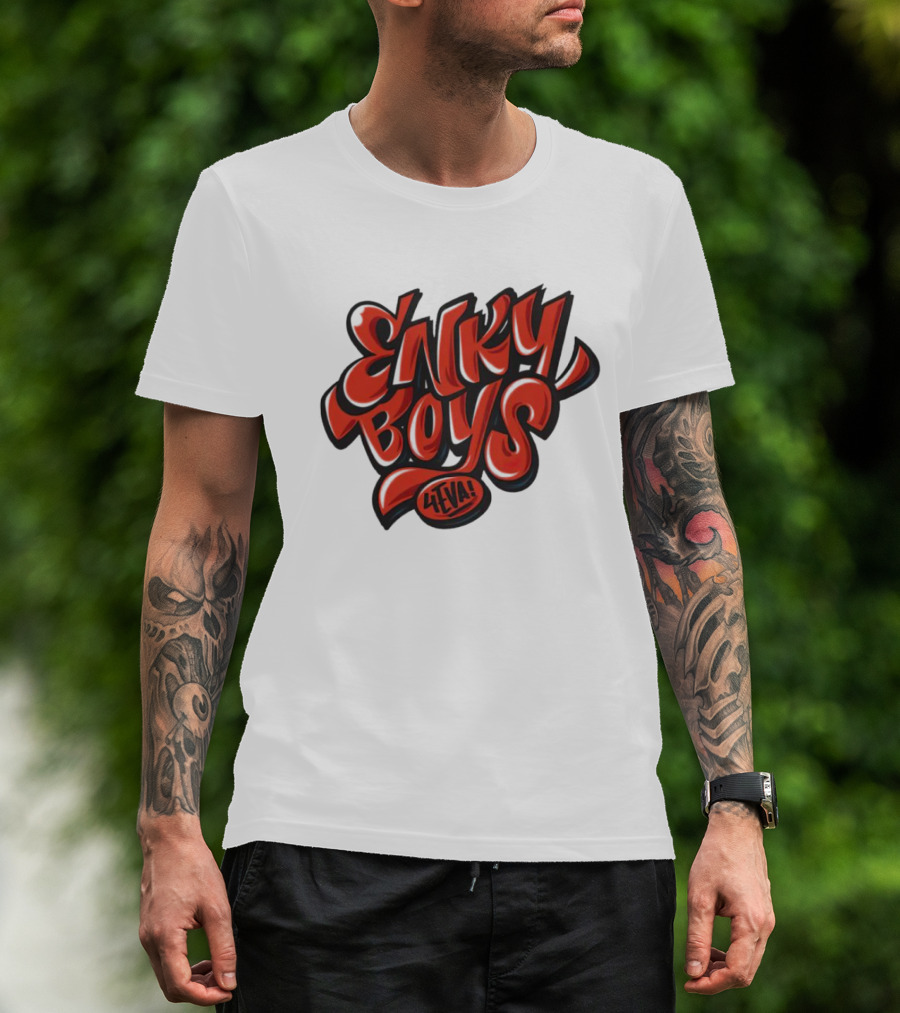The EnkyBoys 4EVA Retro Street T-shirt is designed for everyday wear and a consistent fit. Fabric is pre-shrunk ring-spun cotton with durable stitching. See the size chart below for exact measurements.