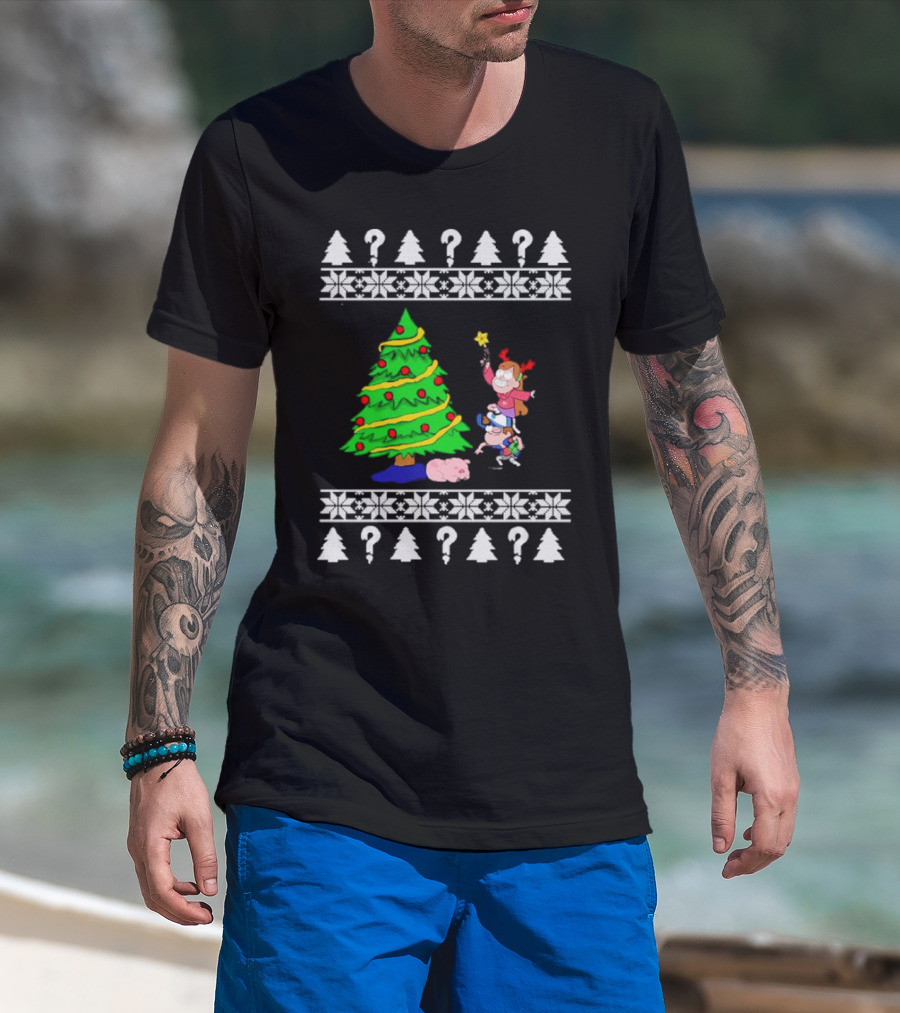 Gravity Falls Christmas Tree With Mabel And Waddles In Festive T-Shirt