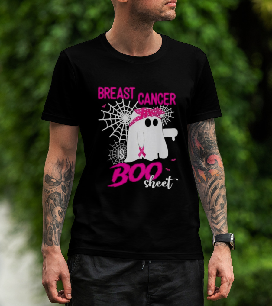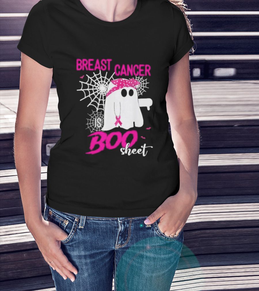 Breast Cancer Is Boo Sheet Halloween Ghost With Pink Ribbon And Spider Webs T-Shirt