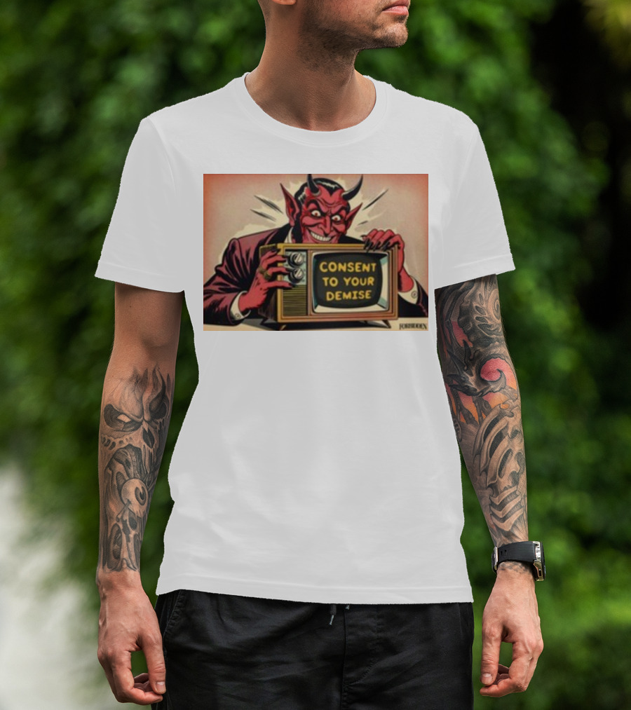 Forbiddenclothes Consent To Your Demise Devil Holding Vintage Television T-Shirt