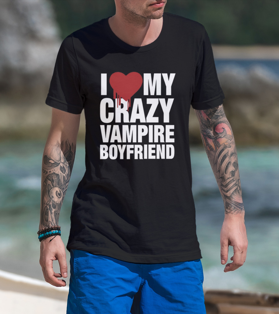 I Love My Crazy Vampire Boyfriend Dripping Red Heart T-Shirt