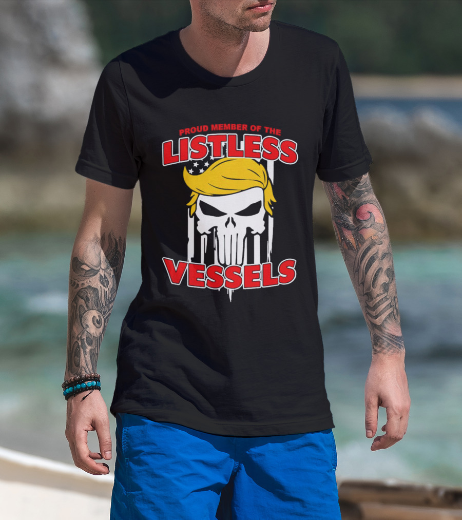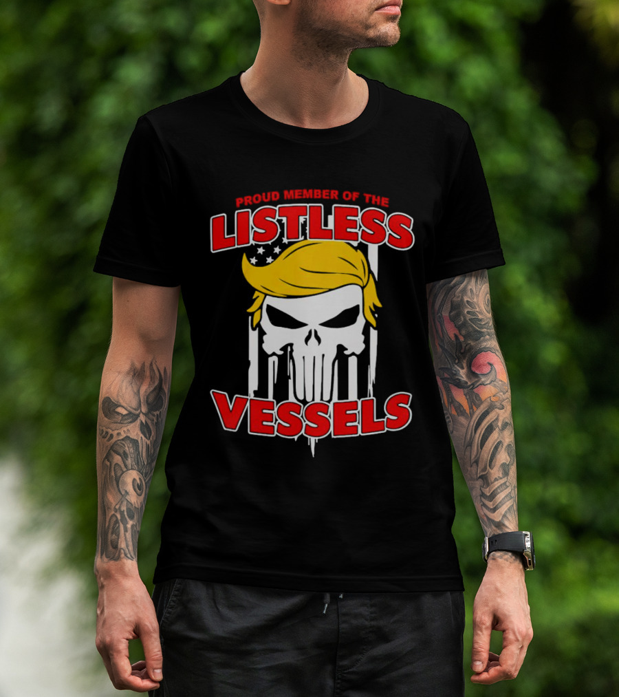 Proud Member Of The Listless Vessels Skull Hair American Flag T-Shirt