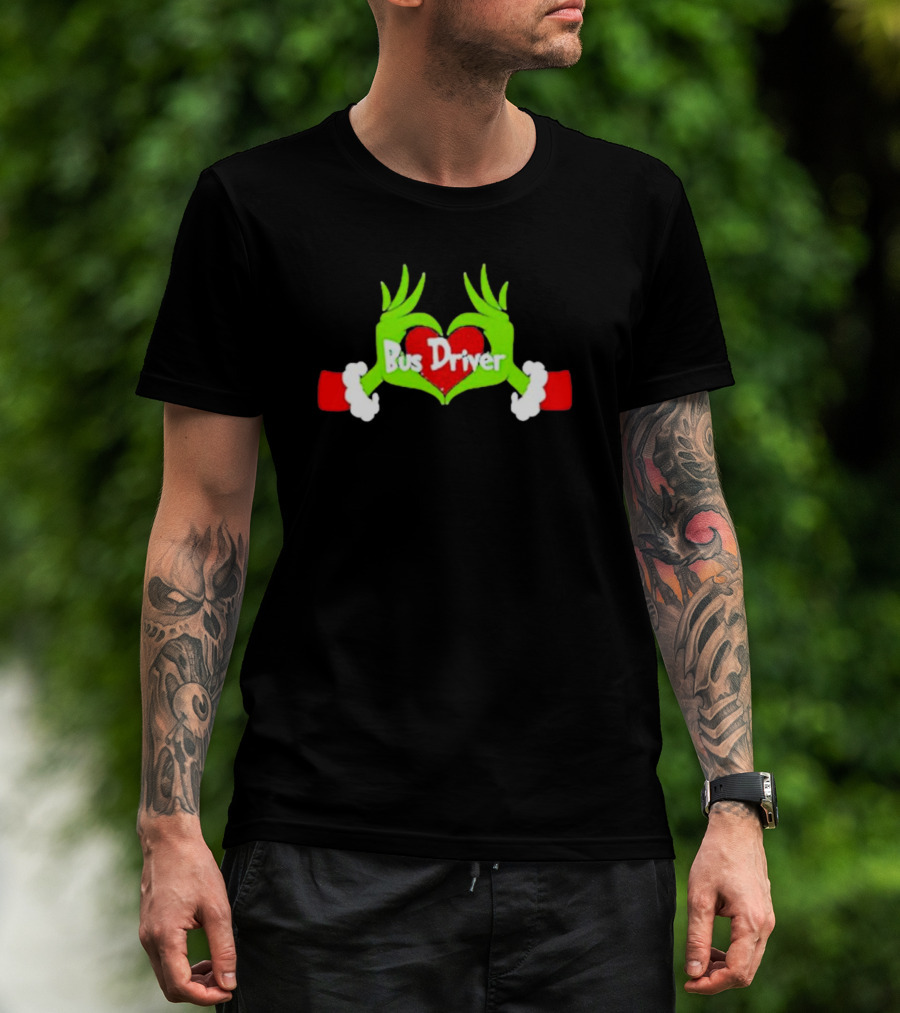 Grinch Hand Heart Bus Driver Christmas Love T-Shirt