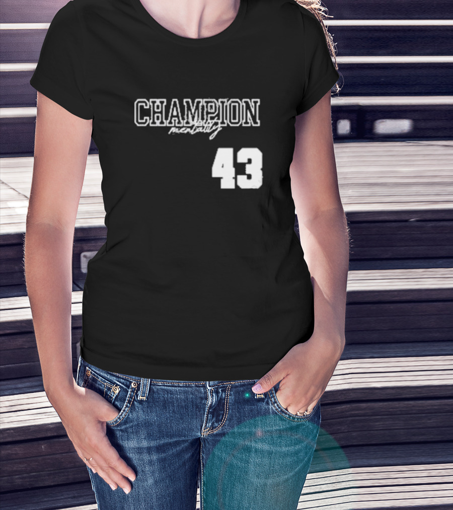 The Champion Mentality 43 T-shirt is designed for everyday wear and a consistent fit. Fabric is pre-shrunk ring-spun cotton with durable stitching. See the size chart below for exact measurements.