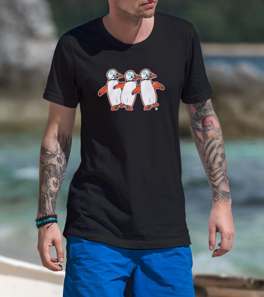 The Miami Football Penguins T-shirt is designed for everyday wear and a consistent fit. Fabric is pre-shrunk ring-spun cotton with durable stitching. See the size chart below for exact measurements.