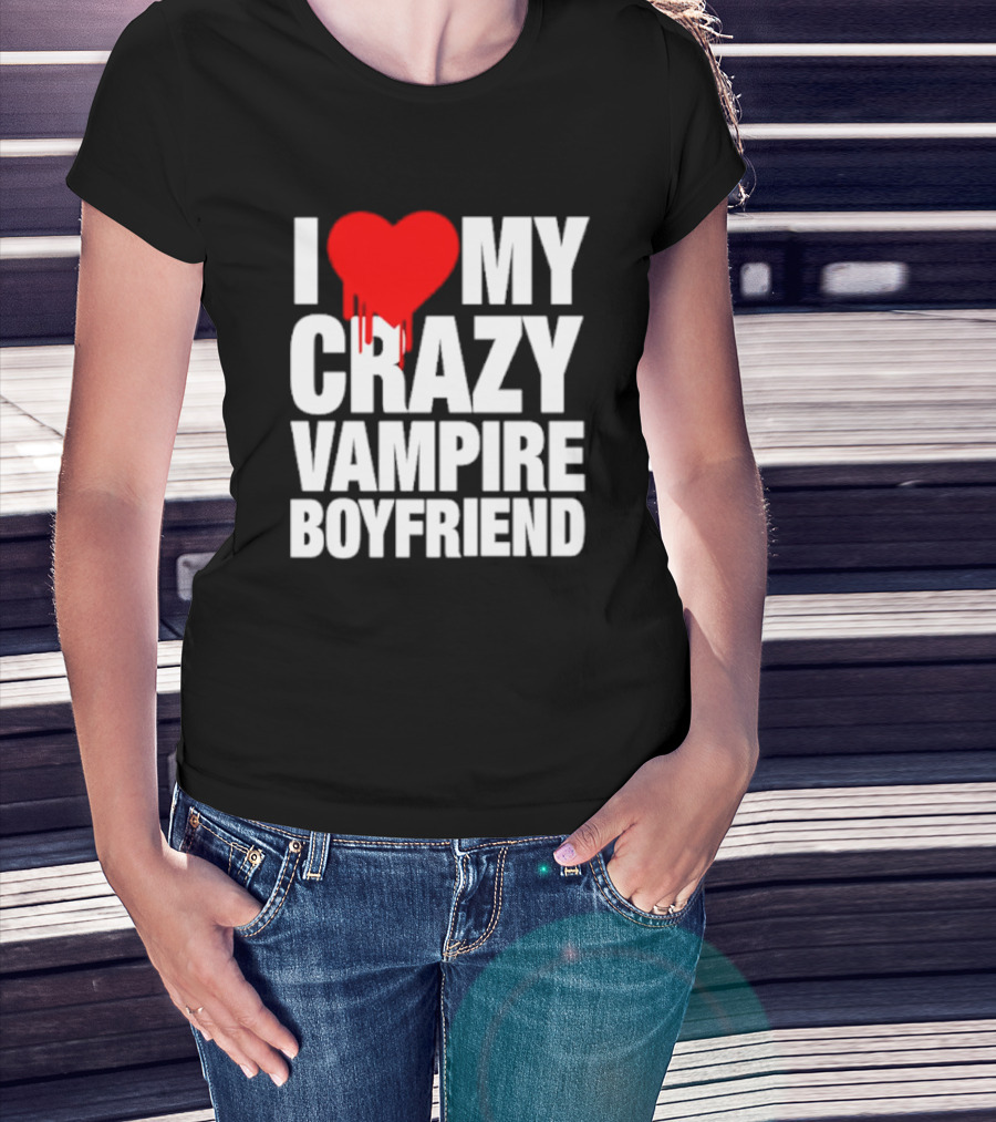 I Love My Crazy Vampire Boyfriend Dripping Heart T-Shirt