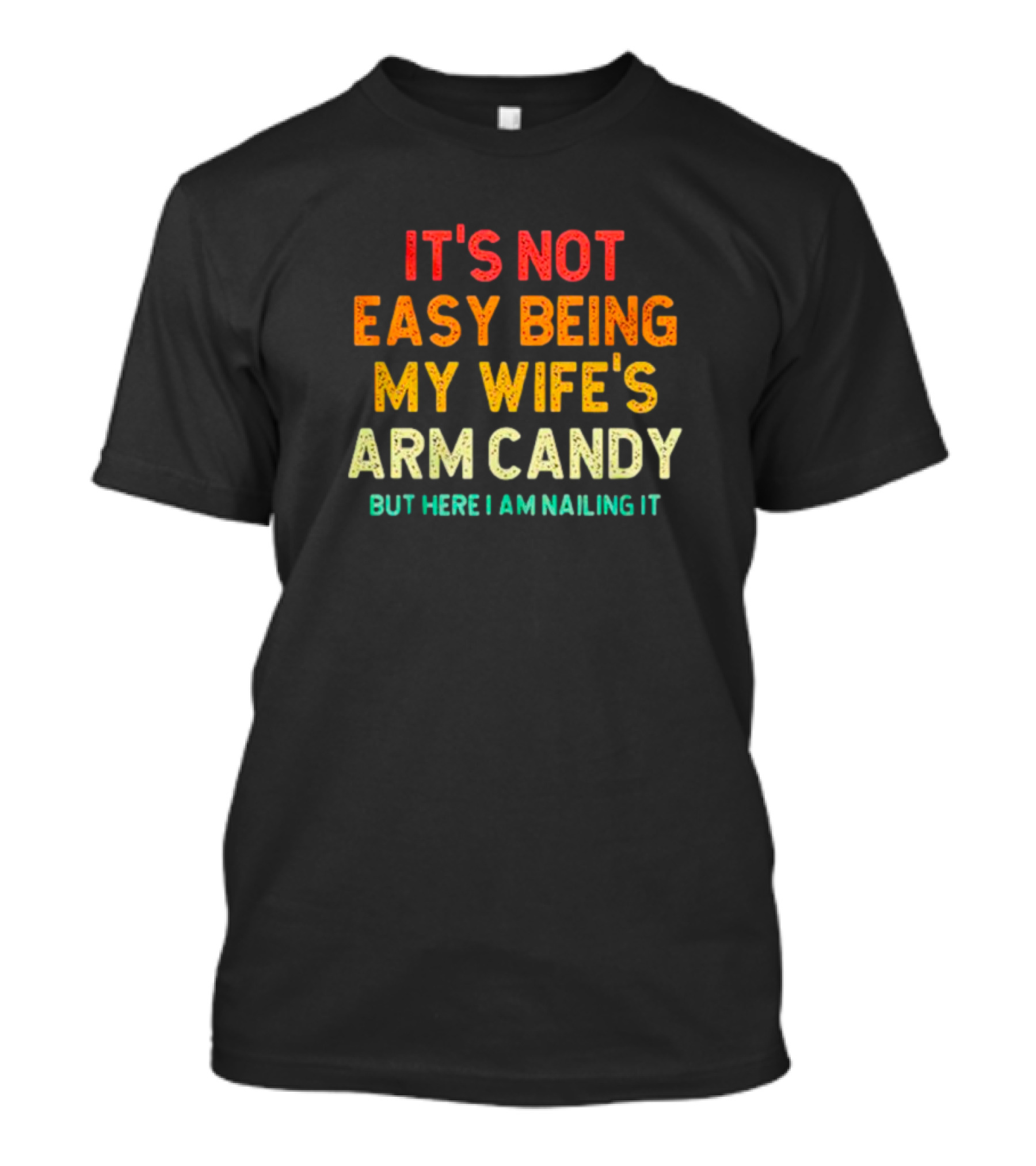 The It's Not Easy Being My Wife's Arm Candy But Here I Am Nailing It Vintage T-shirt is designed for everyday wear and a consistent fit. Fabric is pre-shrunk ring-spun cotton with durable stitching. See the size chart below for exact measurements.