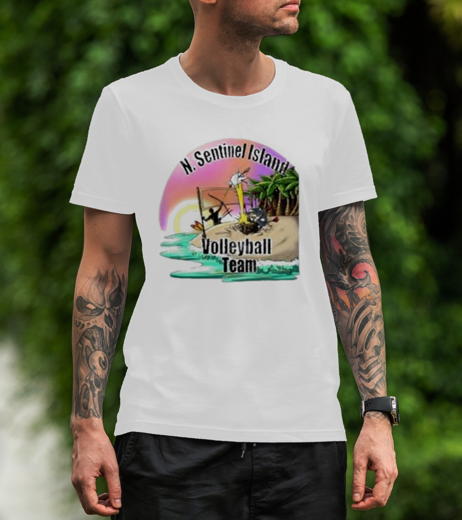 N. Sentinel Island Volleyball Team Sunset Beach Scene With Palms T-Shirt