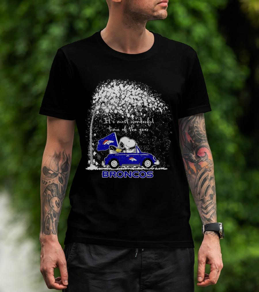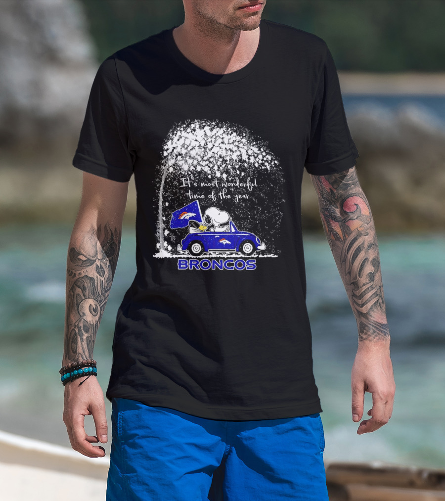 Snoopy And Woodstock Broncos It’s Most Wonderful Time Of The Year Winter Scene T-Shirt
