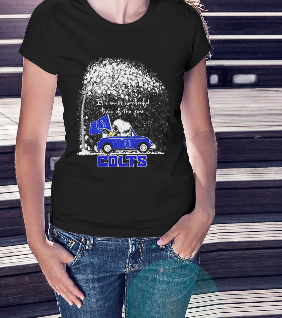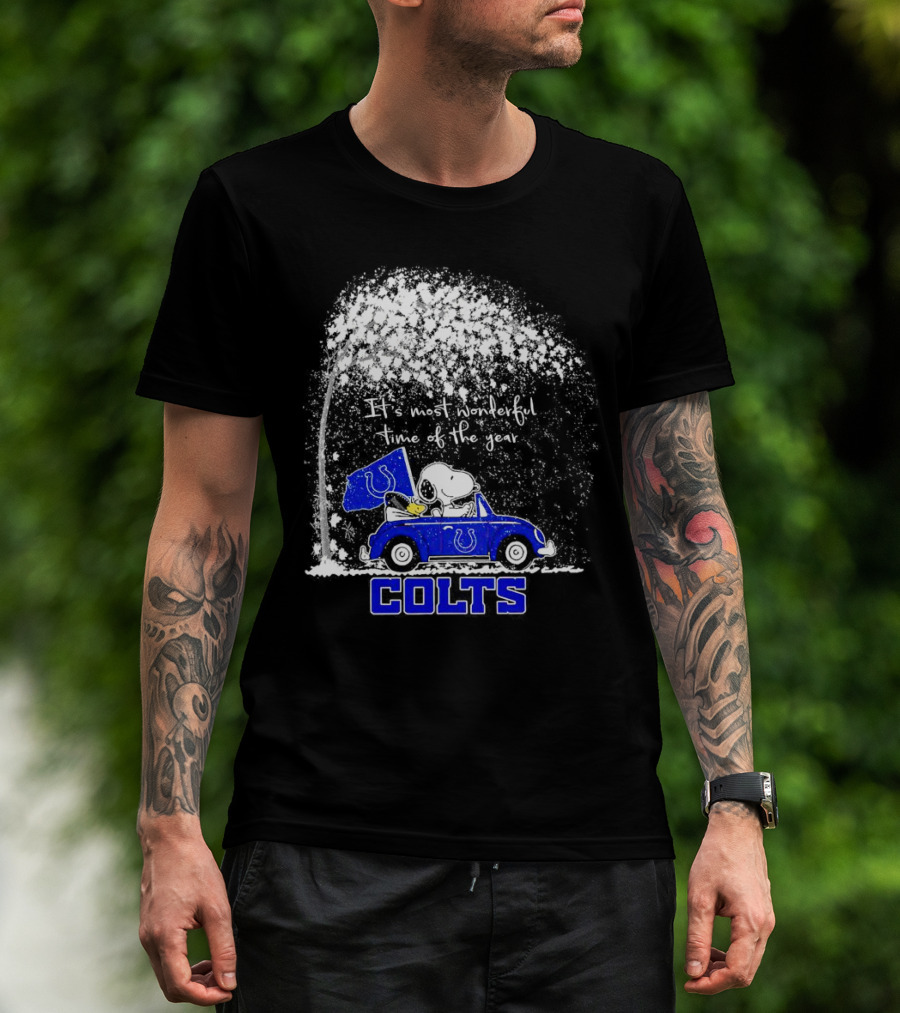 Snoopy And Woodstock Colts It's Most Wonderful Time Of The Year Winter Car Scene T-Shirt