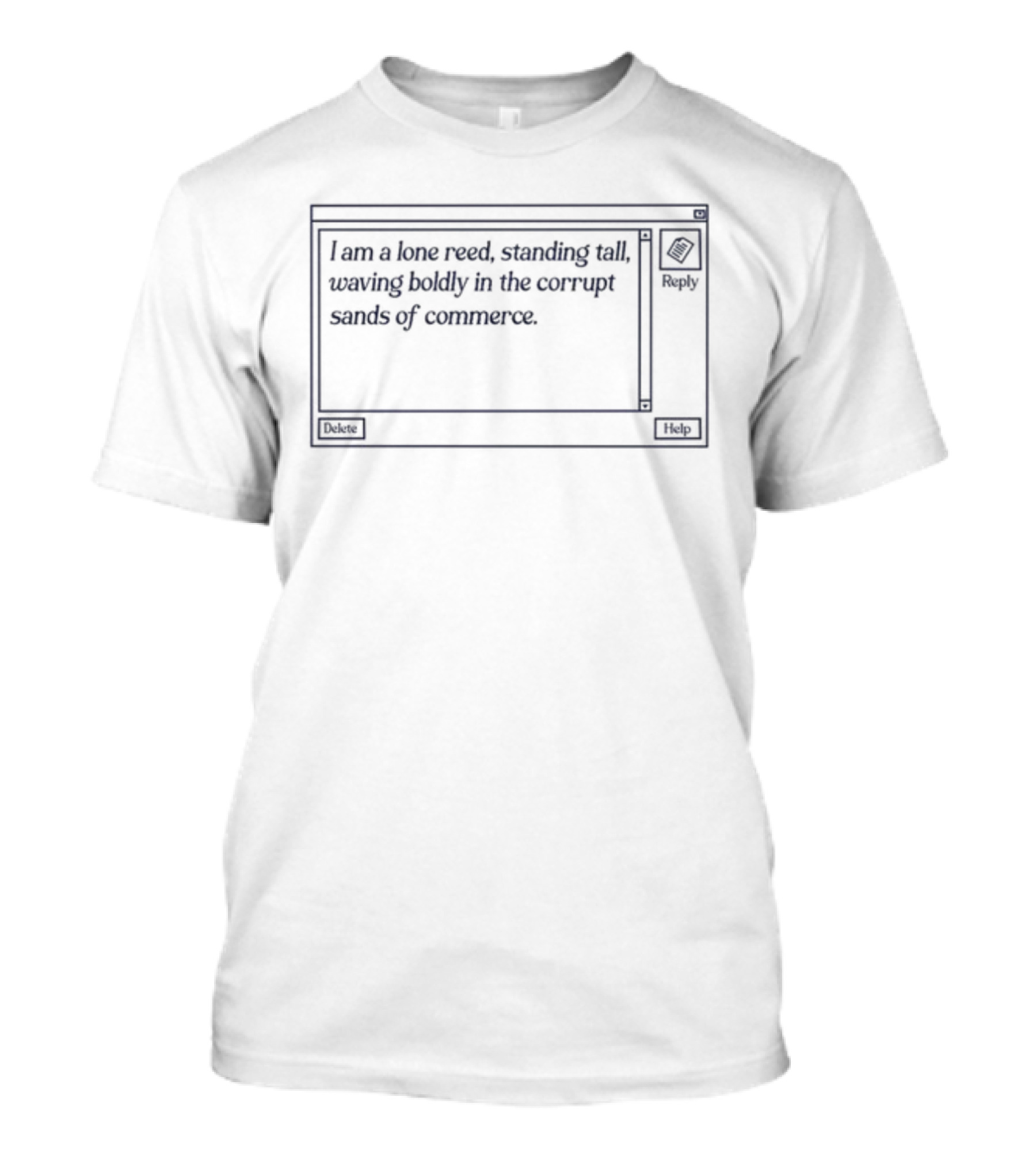 Superyaki I Am A Lone Reed Standing Tall Waving Boldly In The Corrupt Sands Of Commerce Windows Style Text Box T-Shirt