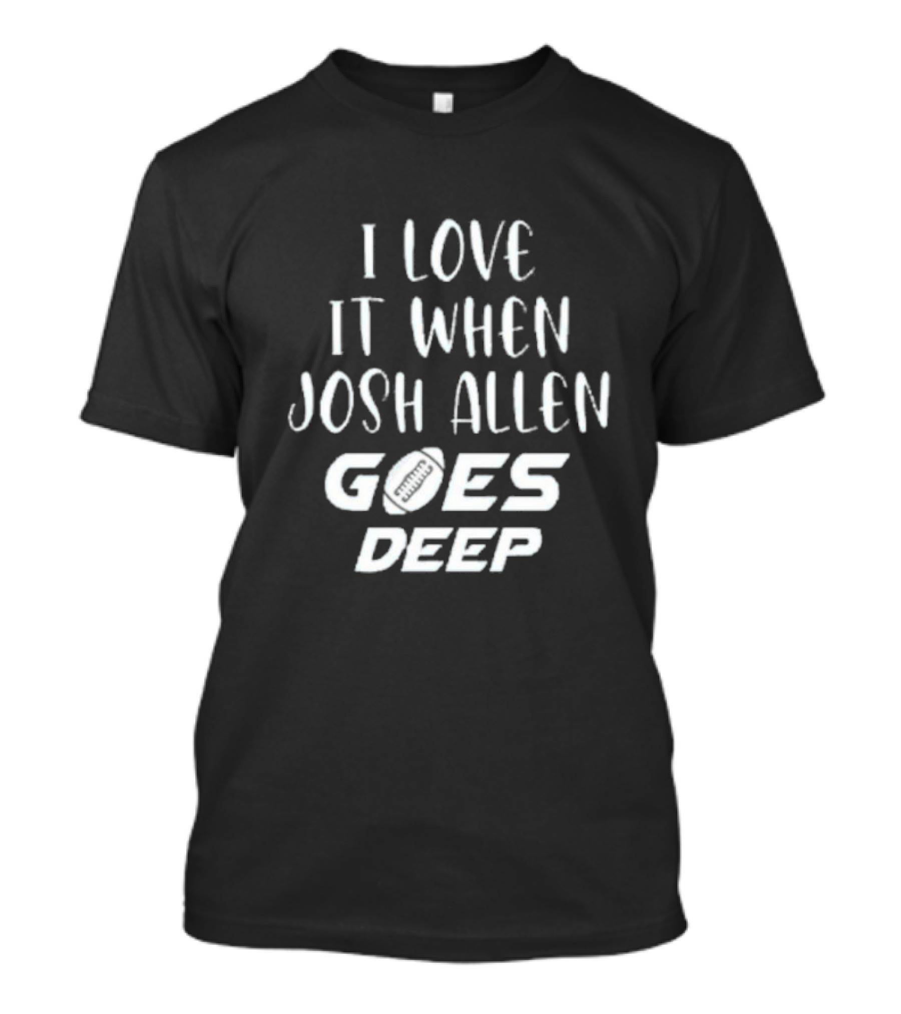 The I Love It When Josh Allen Goes Deep Football T-shirt is designed for everyday wear and a consistent fit. Fabric is pre-shrunk ring-spun cotton with durable stitching. See the size chart below for exact measurements.