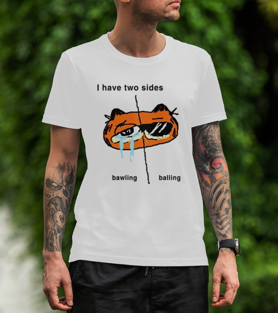 Goofyahhtees I Have Two Sides Bawling Balling Orange Cartoon Face Split Humor T-Shirt