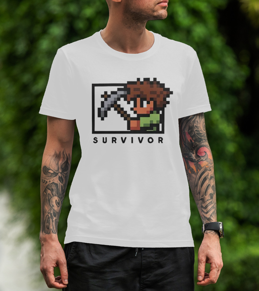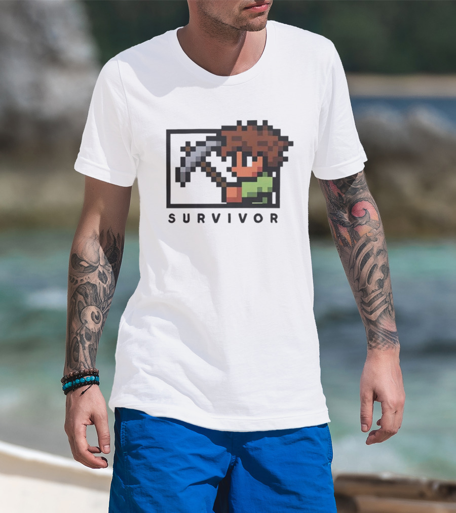 Terraria Survivor Pixel Art Character With Pickaxe T-Shirt