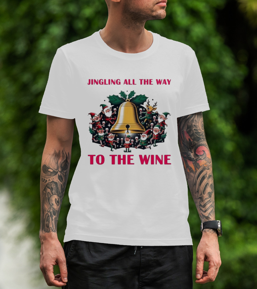 Jingling All The Way To The Wine Christmas Elves And Reindeer Bell T-Shirt
