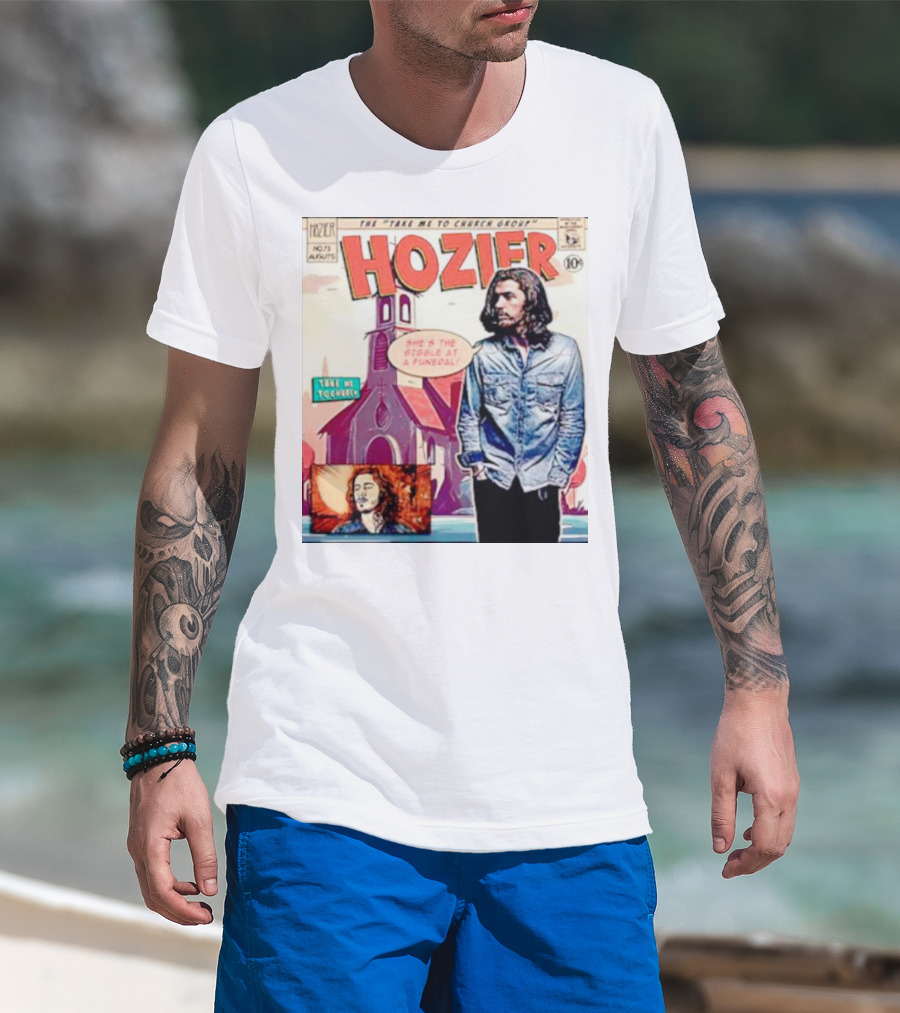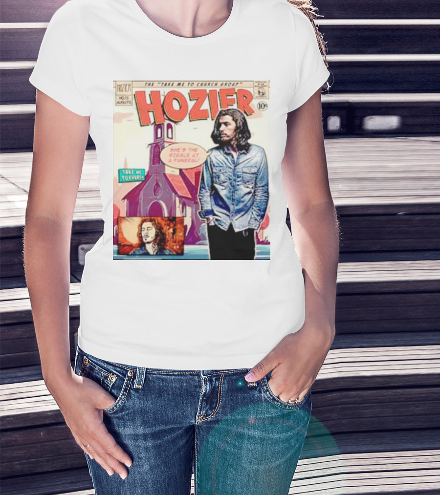Hozier The Take Me To Church Group Comic Style With Giggle At A Funeral Text T-Shirt
