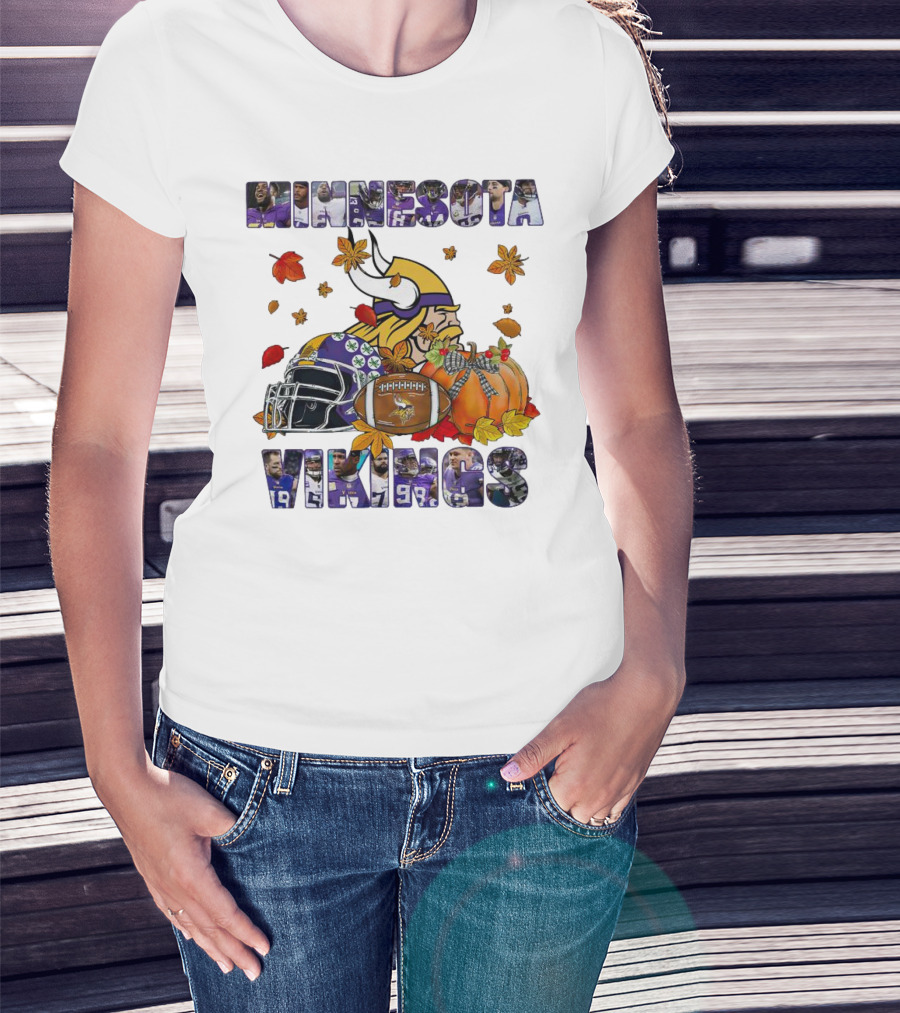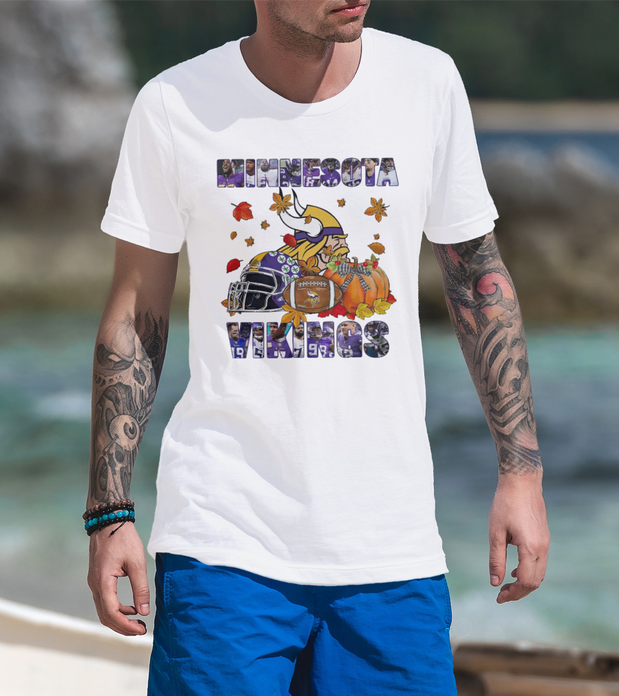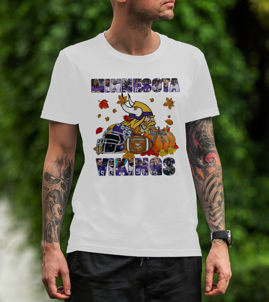 Minnesota Vikings Football Fall Leaves Helmet Pumpkin T-Shirt