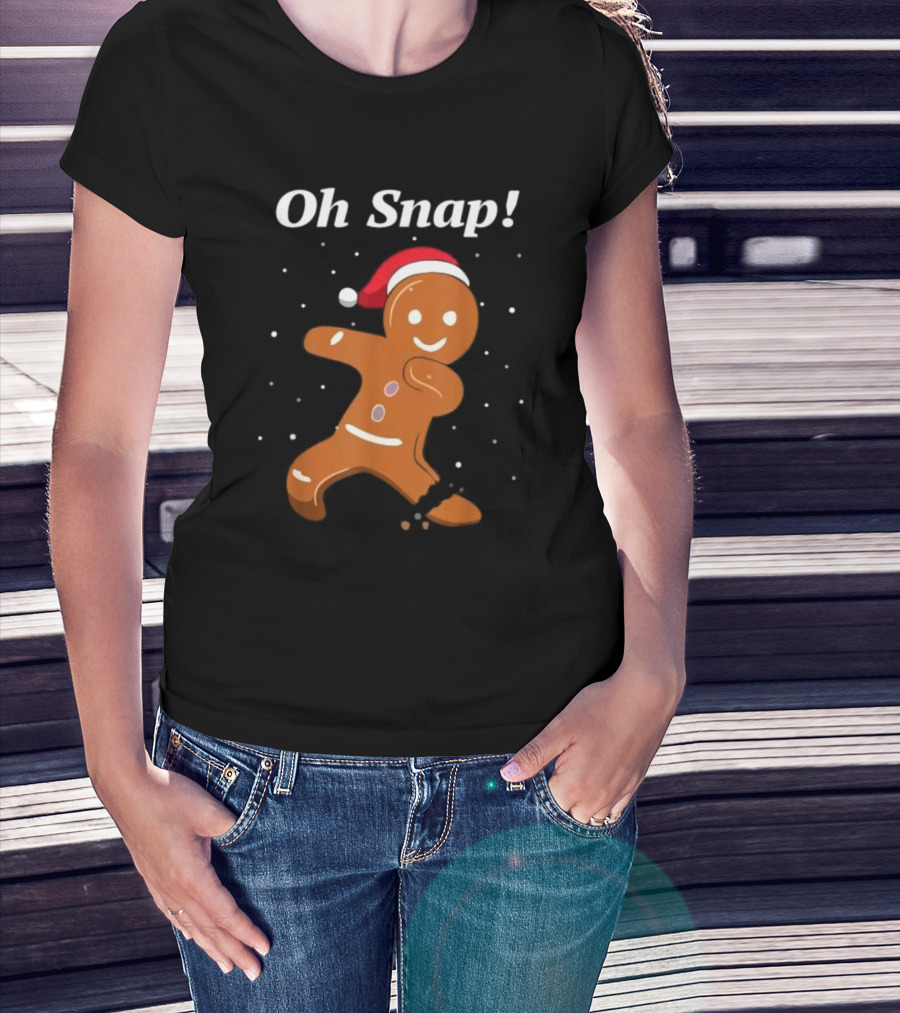 Oh Snap Gingerbread Merry Christmas Cookie Santa Hat T-Shirt