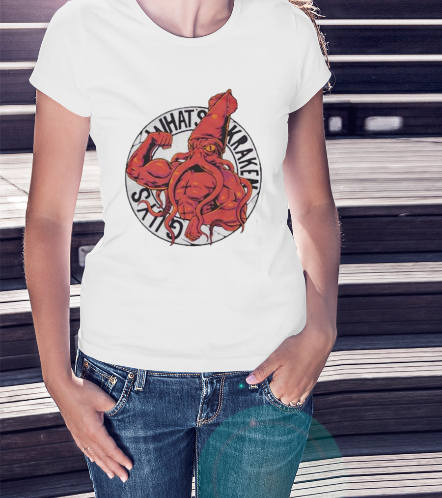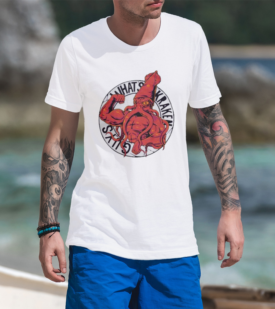 What’s Kraken Guys Sea Muscular Squid Circle T-Shirt