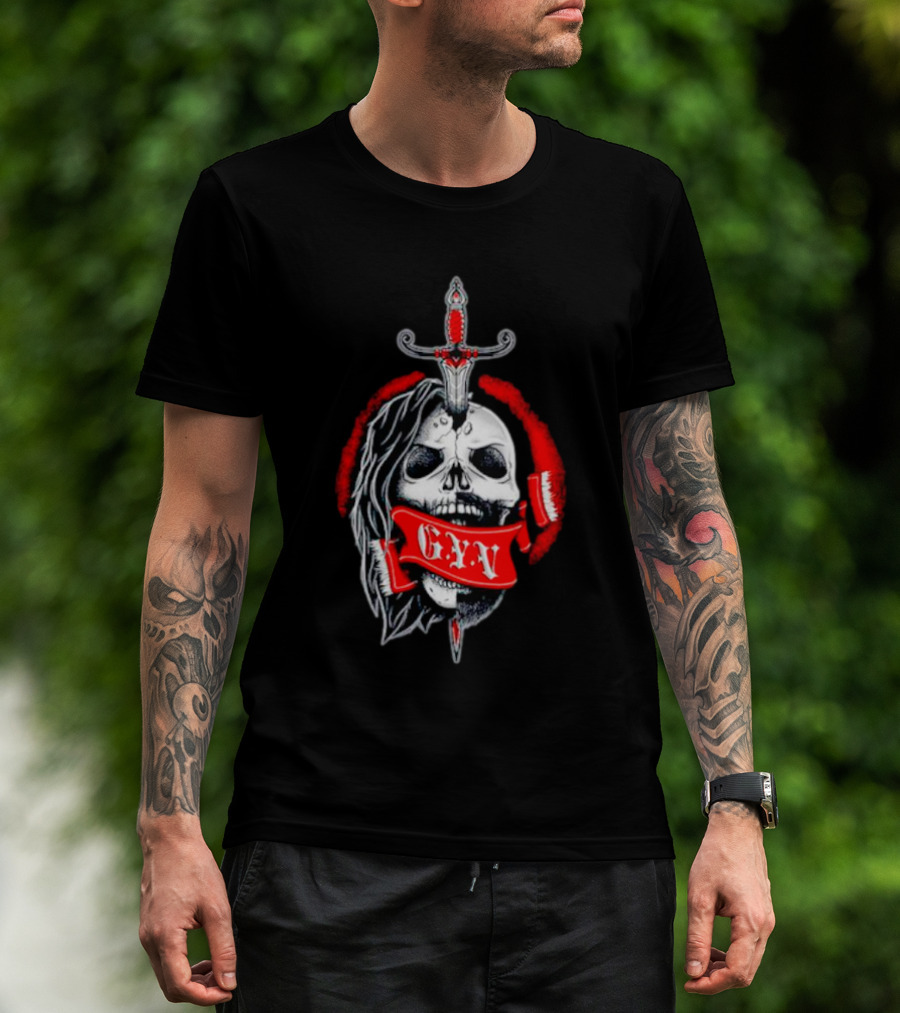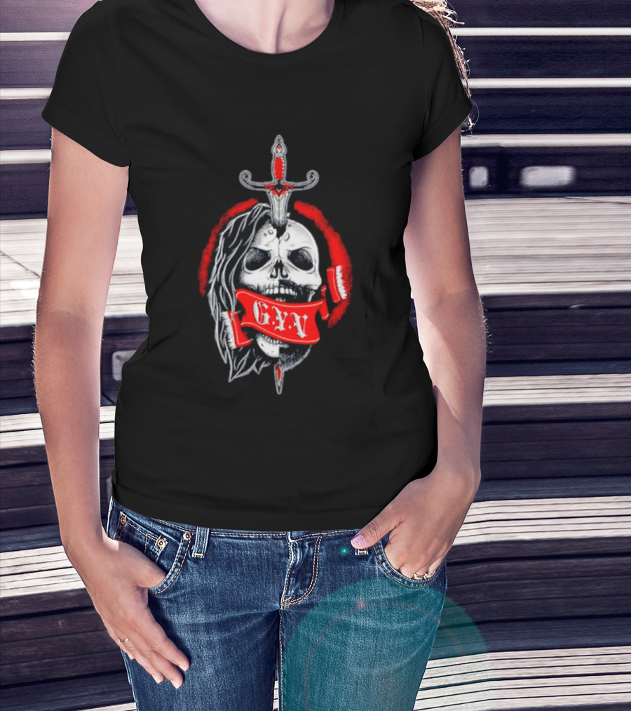 The GYV Skull Sword Emblem 202 T-shirt is designed for everyday wear and a consistent fit. Fabric is pre-shrunk ring-spun cotton with durable stitching. See the size chart below for exact measurements.