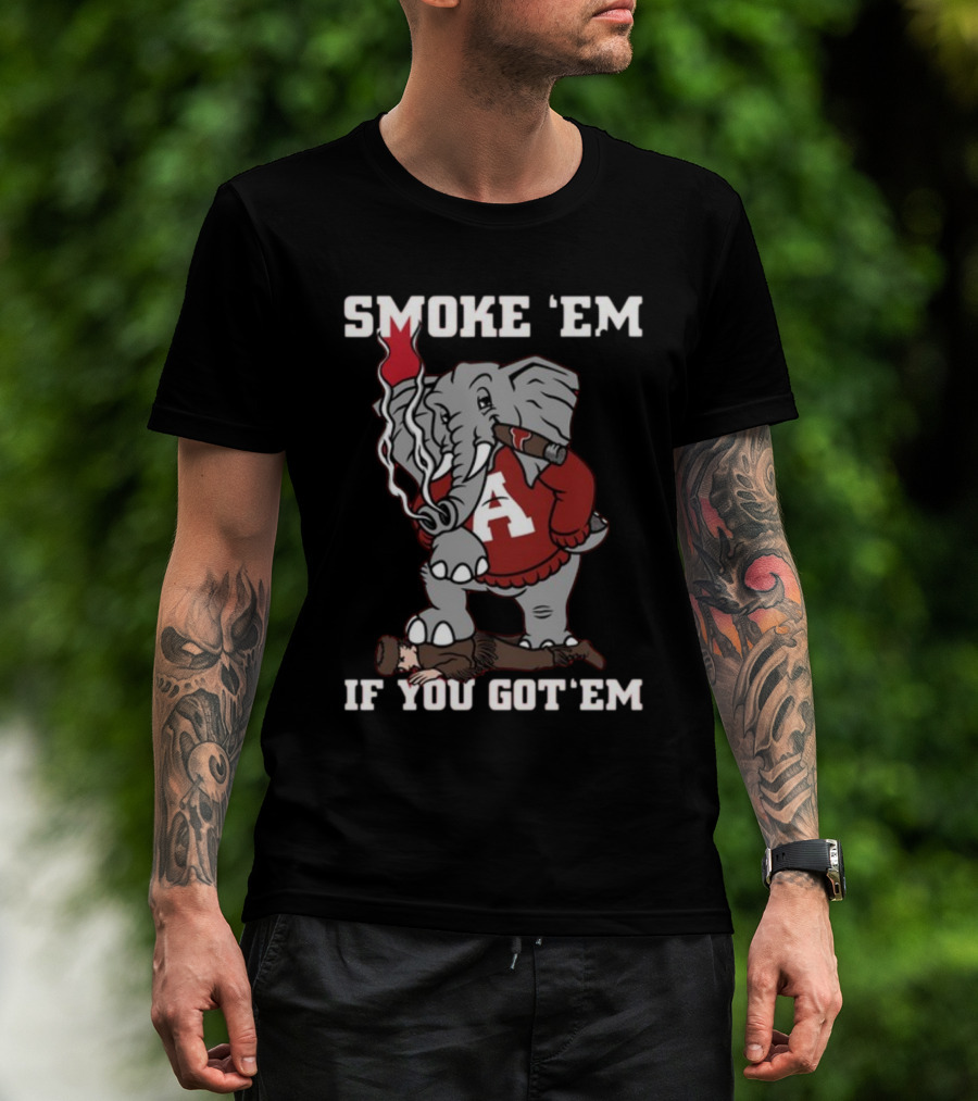 Smoke Em Alabama Elephant Graphic Red White Football T-Shirt