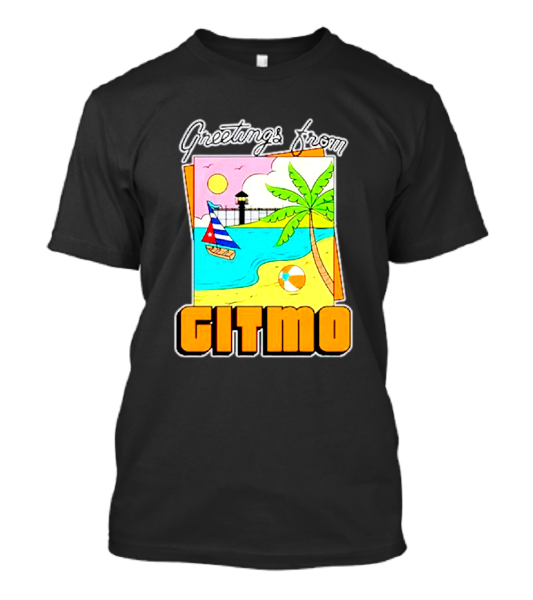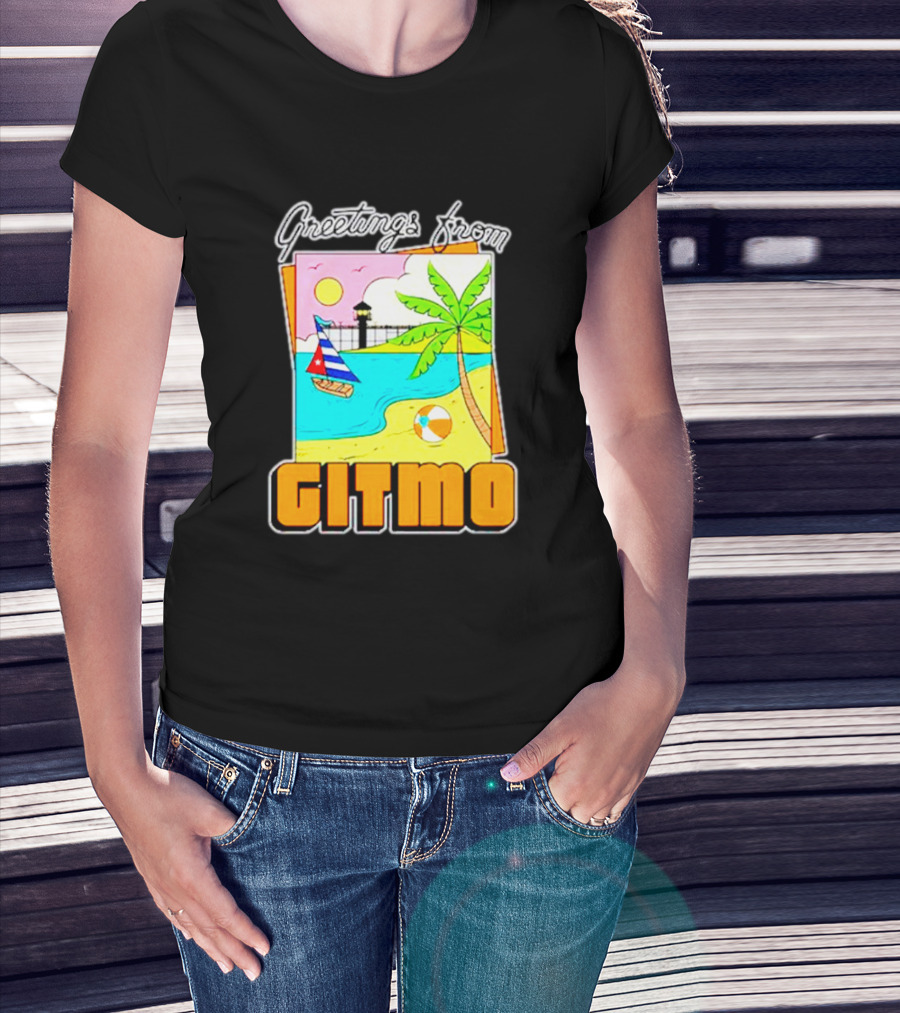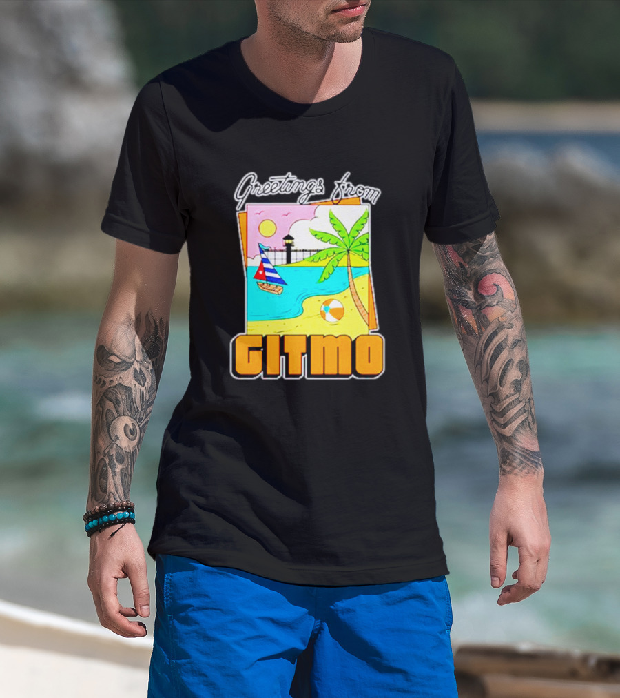 Greetings From Gitmo Beach Paradise With Sailboat And Palm Tree T-Shirt