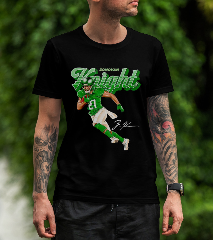 Zonovan Knight New York Jets Vintage Style Green Knight Signature Football T-Shirt