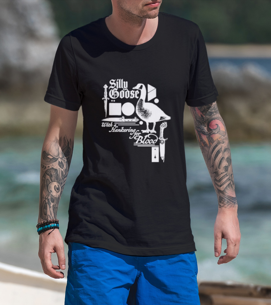 The Silly Goose With a Hankering for Blood T-shirt is designed for everyday wear and a consistent fit. Fabric is pre-shrunk ring-spun cotton with durable stitching. See the size chart below for exact measurements.