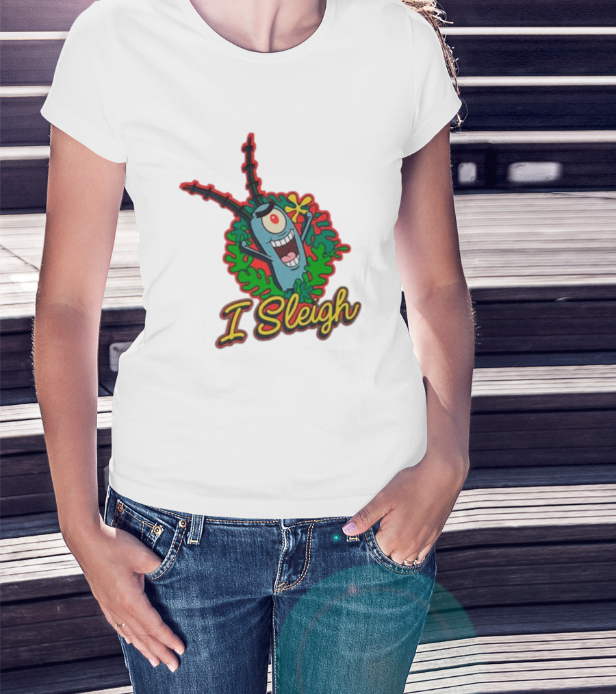 SpongeBob SquarePants Plankton I Sleigh Christmas Holiday Wreath T-Shirt