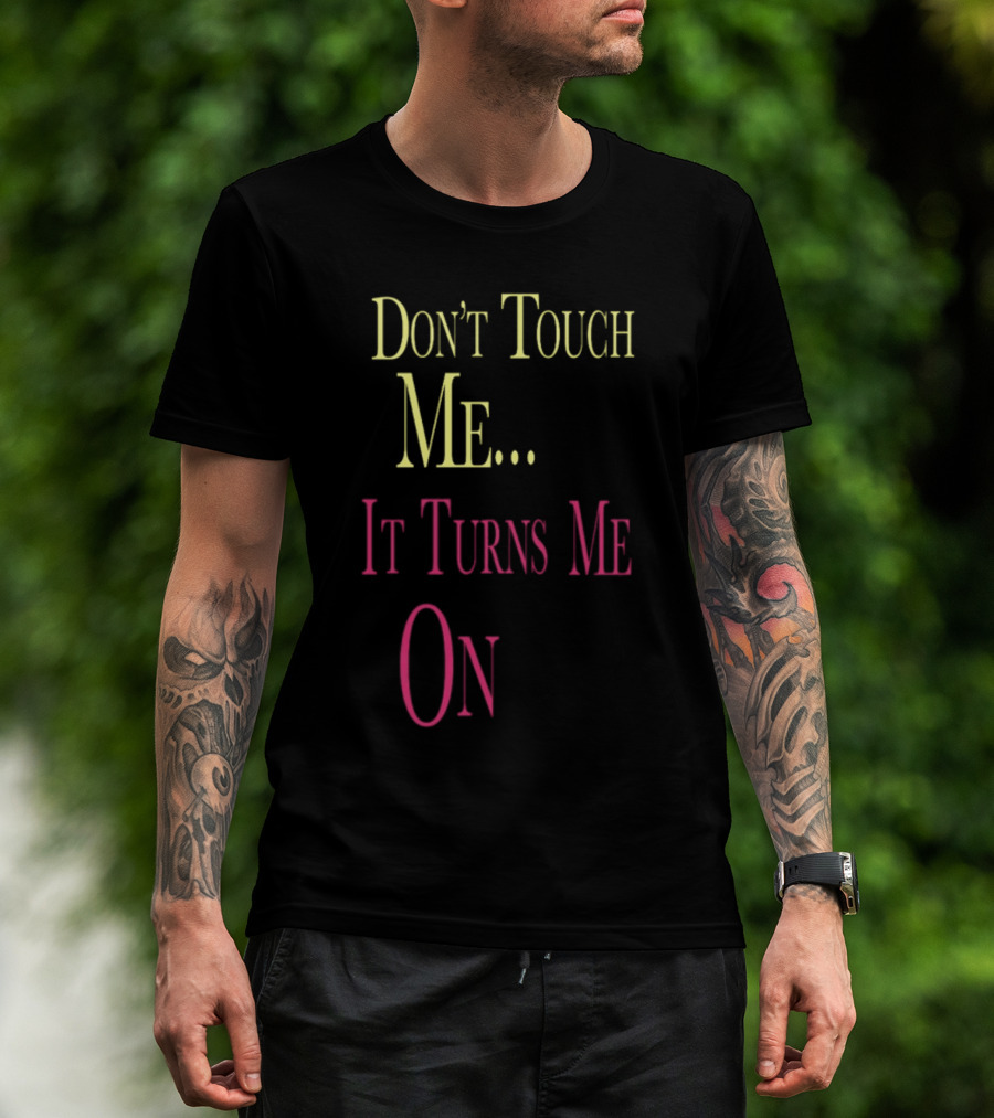 The Don't Touch Me It Turns Me On T-shirt is designed for everyday wear and a consistent fit. Fabric is pre-shrunk ring-spun cotton with durable stitching. See the size chart below for exact measurements.