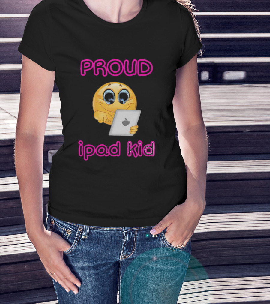 Proud Smile Emoji With IPad Kid T-Shirt