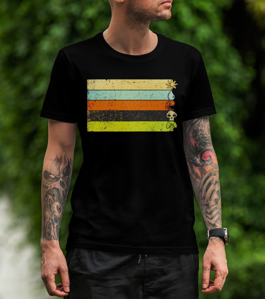 Vintage Magic Sun Water Elements Skull Retro Stripes T-Shirt