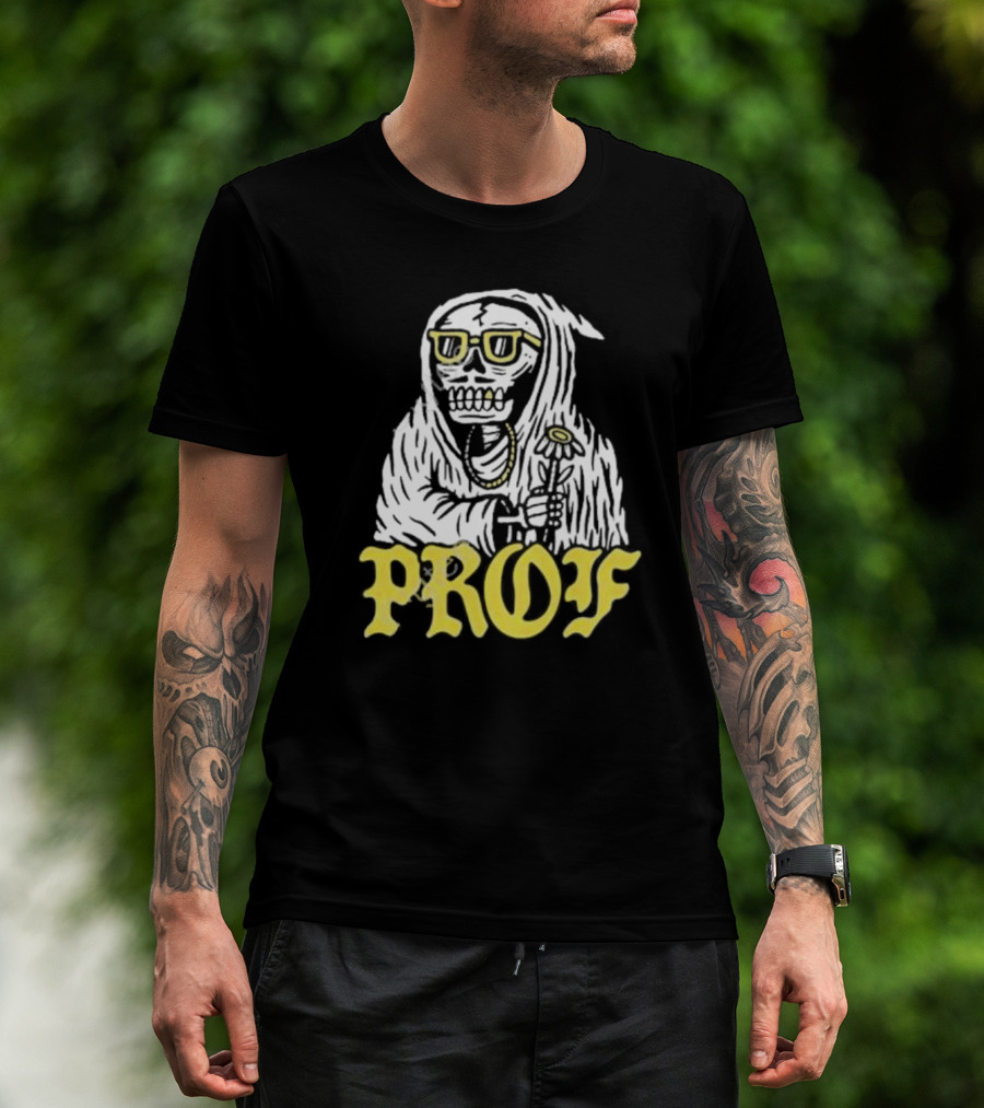 Prof Tombstones Skeleton With Yellow Glasses And Flower T-Shirt