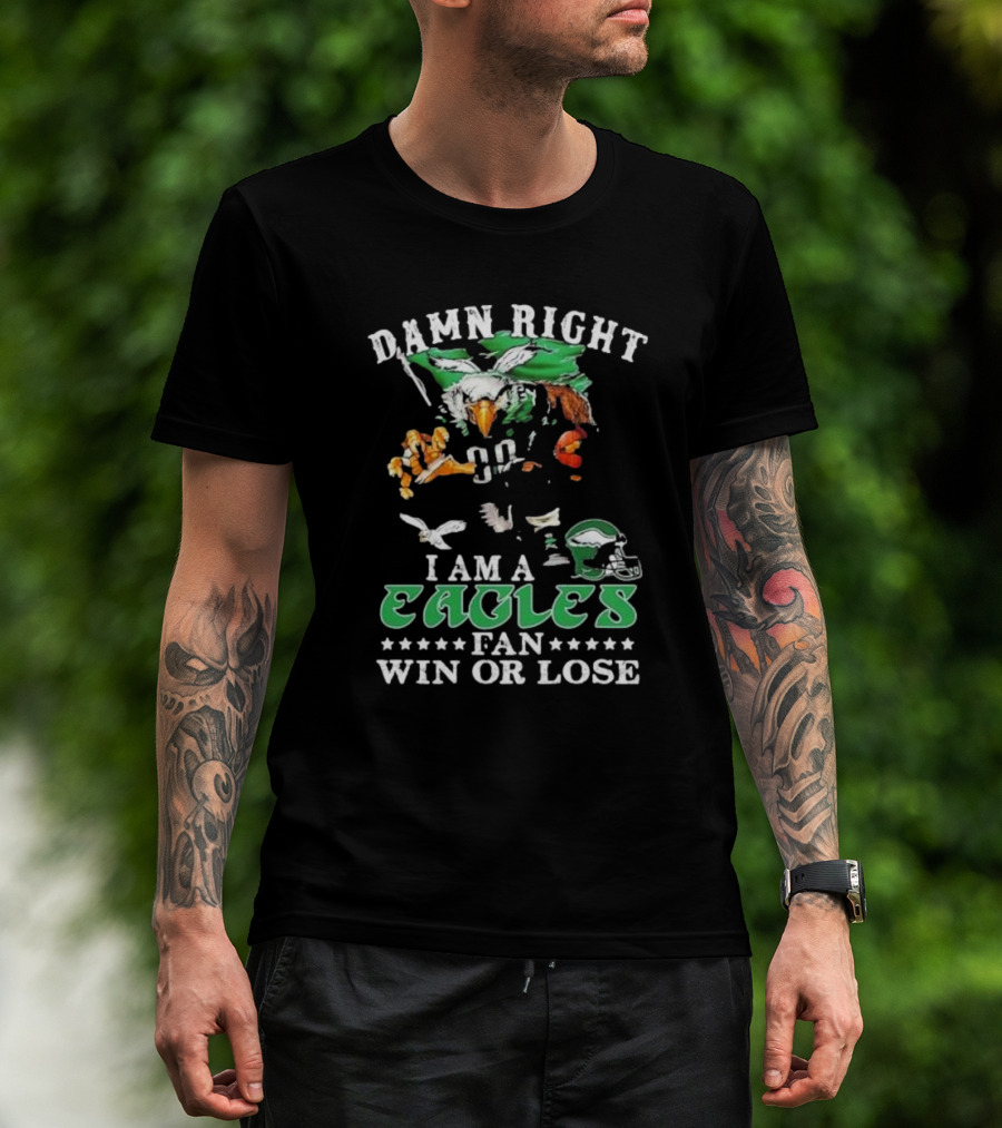 Damn Right I Am A Philadelphia Eagles Fan Win Or Lose Eagle Helmet Football T-Shirt