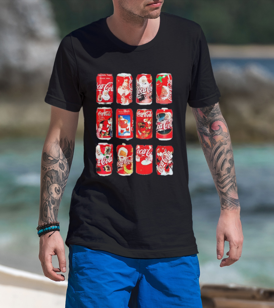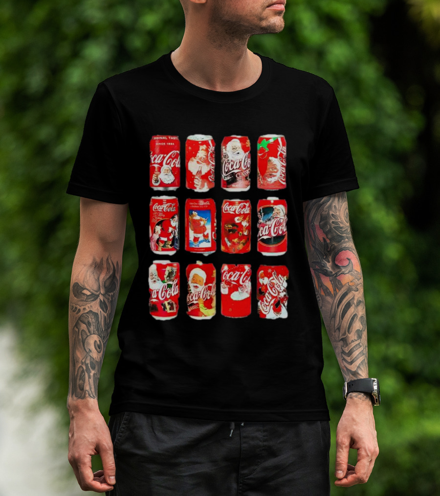 Coca Cola Santa Claus Cans Collection Vintage Holiday T-Shirt
