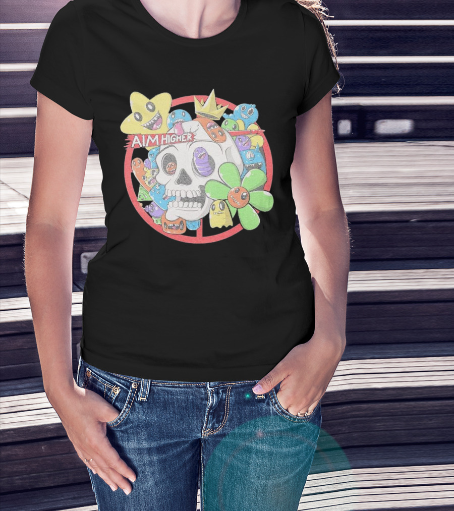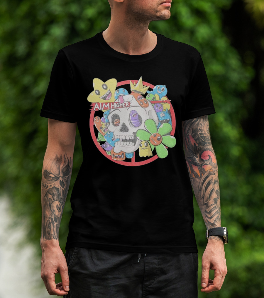 Friends N Monsters Aim Higher Cotton Candy Skull Star Flower T-Shirt