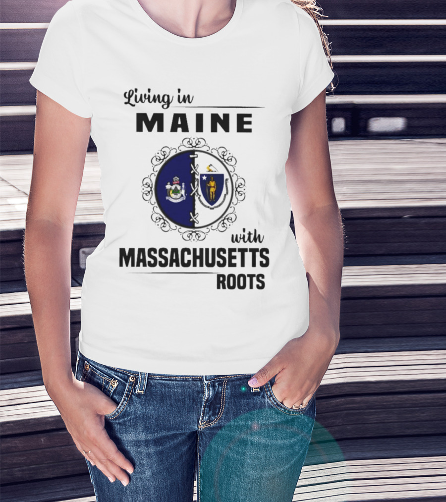 Living In Maine With Massachusetts Roots Emblem Illustrating State Seals T-Shirt