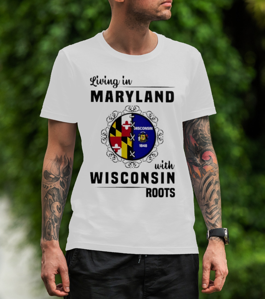 Living In Maryland With Wisconsin Roots Emblem T-Shirt