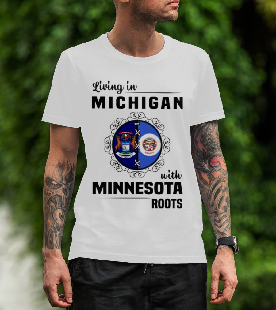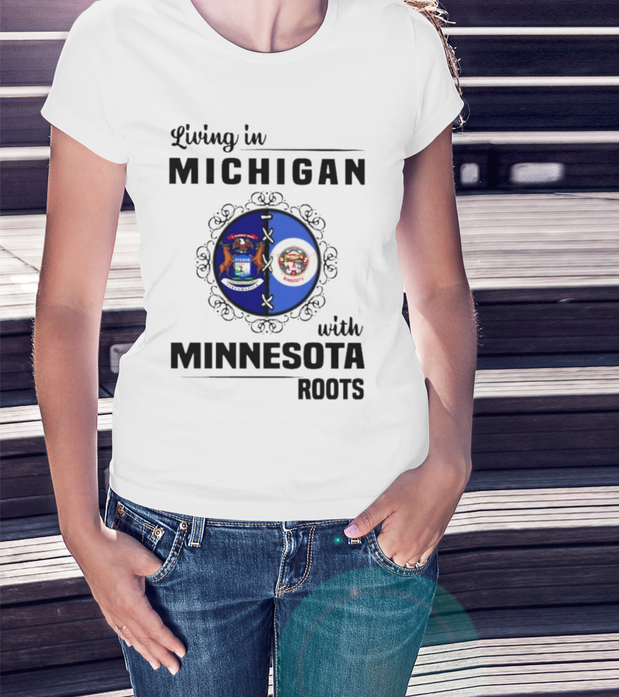Living In Michigan Michigan Seal With Minnesota Roots Minnesota Seal T-Shirt