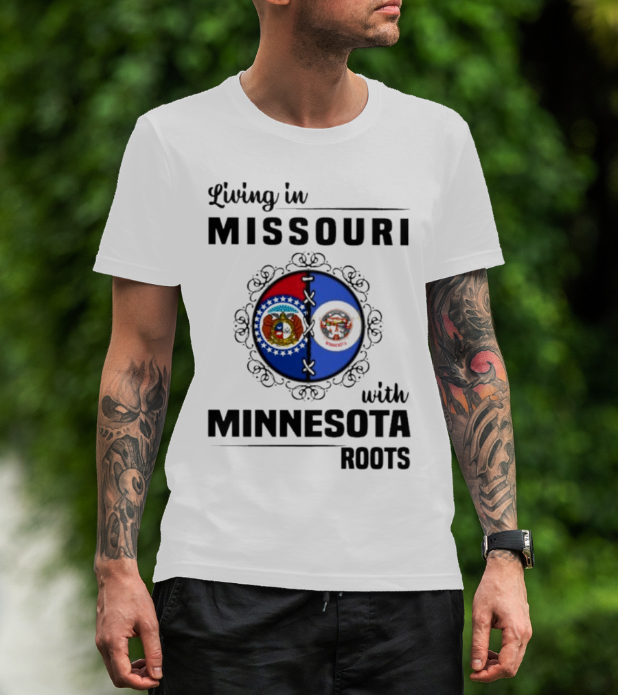 Living In Missouri Proudly Displaying Minnesota Roots State Flags T-Shirt