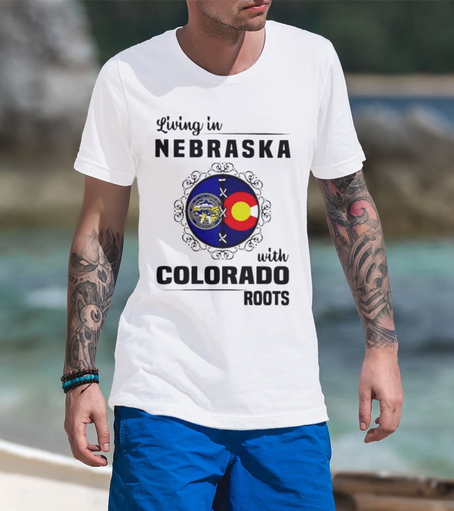 Living In Nebraska With Colorado Roots Flag And Seal Fusion T-Shirt