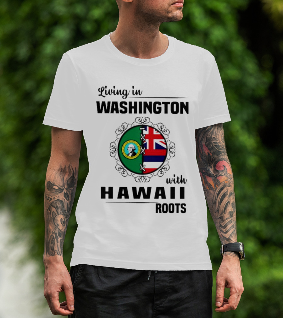 Living In Washington With Hawaii Roots State Seal And Hawaiian Flag Fusion T-Shirt
