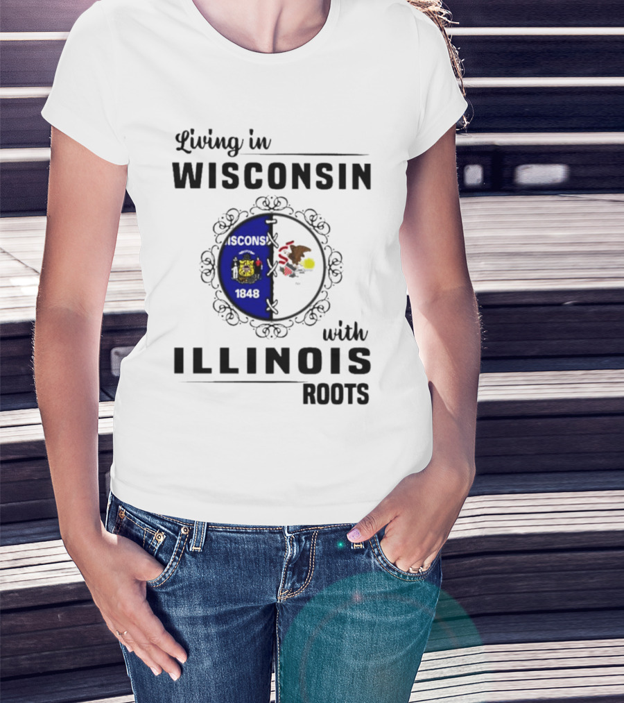 Living In Wisconsin With Illinois Roots State Flags Fusion T-Shirt